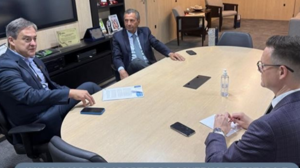 O prefeito de Criciúma, Vaguinho Espíndola, que não participou do evento de fim de ano do PSD, esteve ontem no Centro Administrativo, onde cumpriu três agendas com secretários de Estado. Em todas elas, esteve acompanhado do presidente da Assembleia Legislativa, Julio Garcia. Nos corredores do Centro Administrativo, já é dado como certo que Vaguinho apoiará a candidatura de Jorginho Mello à reeleição ao governo do Estado. Na foto, da esq. para a dir.: Vaguinho, Julio Garcia e o secretário de Estado da Fazenda, Cleverson Siewert.